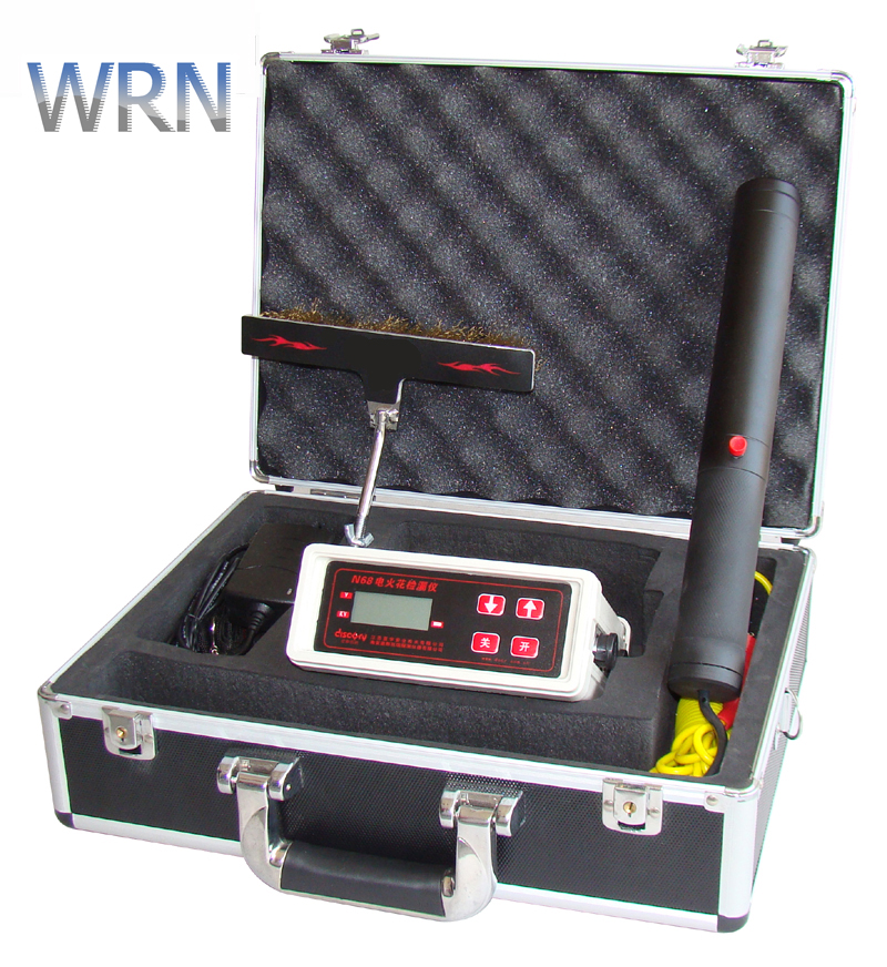 金屬表面絕緣防腐層過薄、漏鐵及漏電微孔處的電阻值和氣隙密度都很小,當有高壓經(jīng)過時就形成氣隙擊穿而產(chǎn)生火花放電,給報警電路產(chǎn)生一個脈沖信號,報警器發(fā)出聲光報警,根據(jù)這一原理達到防腐層檢漏目的。